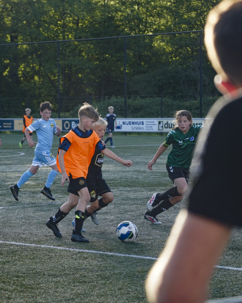 Tijdens deze kennisdelingsactiviteit werd de theorie gekoppeld aan de praktijk. Halverwege de bijeenkomst ging iedereen naar het veld om een onderlinge oefenwedstrijd tussen gemengde teams van FC Winterswijk O12-1, O12-2 en O11-1 te observeren. Hier kregen zij de opdracht om spelers in de gaten te houden waarvan het huidige en/of het potentiële niveau hoog ligt.